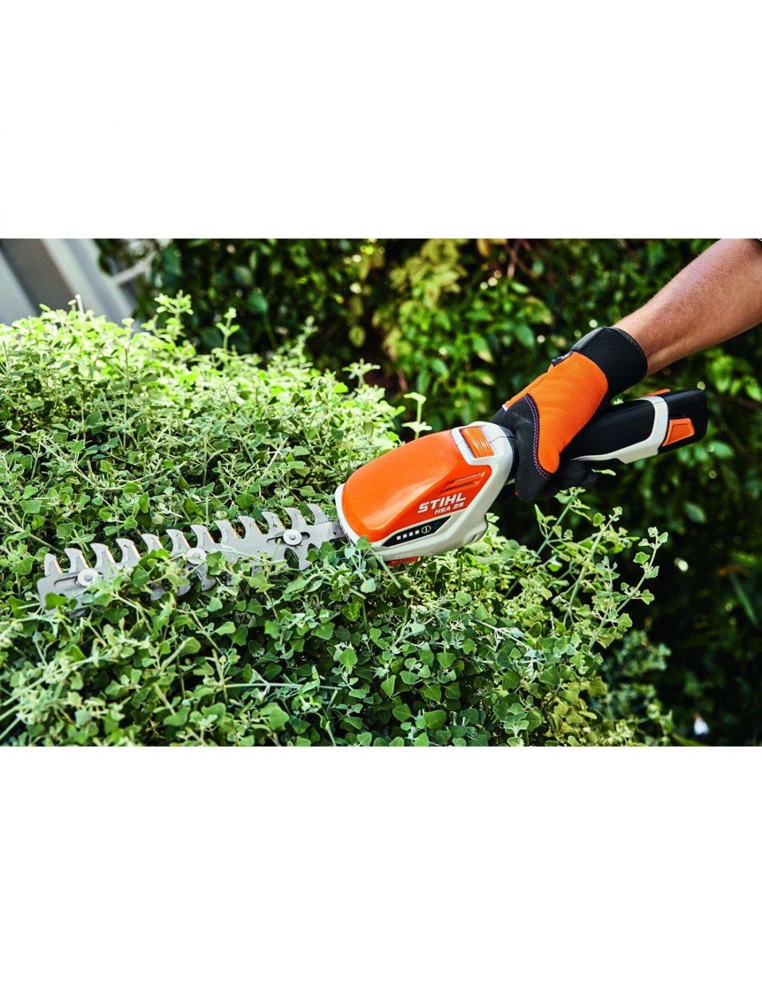 - Lengvos, kompaktiškos akumuliatorinės gyvatvorių žirklės su 2 keičiamais ašmenimis vejos ir krūmų priežiūrai;