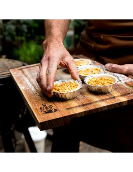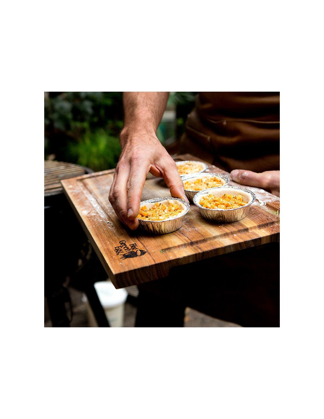Beje, šią lentą galima panaudoti ir kaip serviravimo padėklą užkandžiams arba sūriams, tuo pačiu pademonstruojant lazeriu išgraviruotą Big Green Egg logotipą.