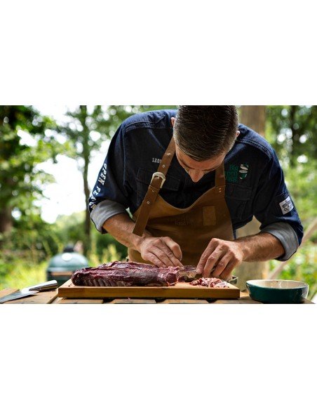 Big Green Egg pjaustymo lenta iš tikmedžio – tobulas paviršius mėsai pjaustyti, daržovėms smulkinti ir prieskoninėms žolelėms kapoti.