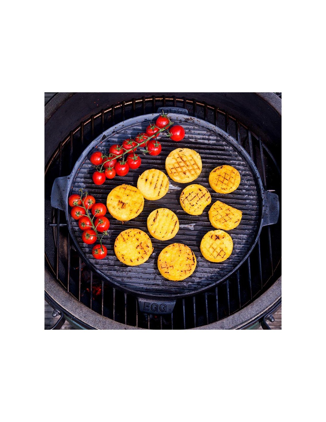 Kartais gaminant Big Green Egg kepsninėje ingredientai iškrenta pro grotelių tarpus? Taip nenutiks naudojant mūsų rantytą ketaus plokštę. Ant rantytosios pusė galite kepti smulkius ir trapius ingredientus, o ant plokščiosios – blynus arba kiaušinius.