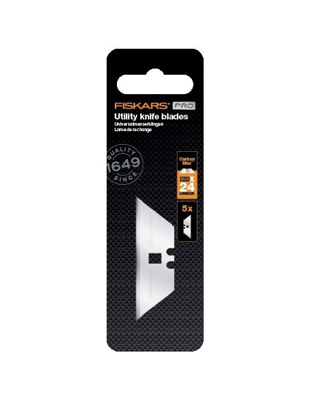 • Ašmenys buvo išsamiai tikrinami ir patvirtinti laboratorijoje. Pakuotę sudaro 5 ašmenys, kurie tinka ir ne FISKARS peiliams.
