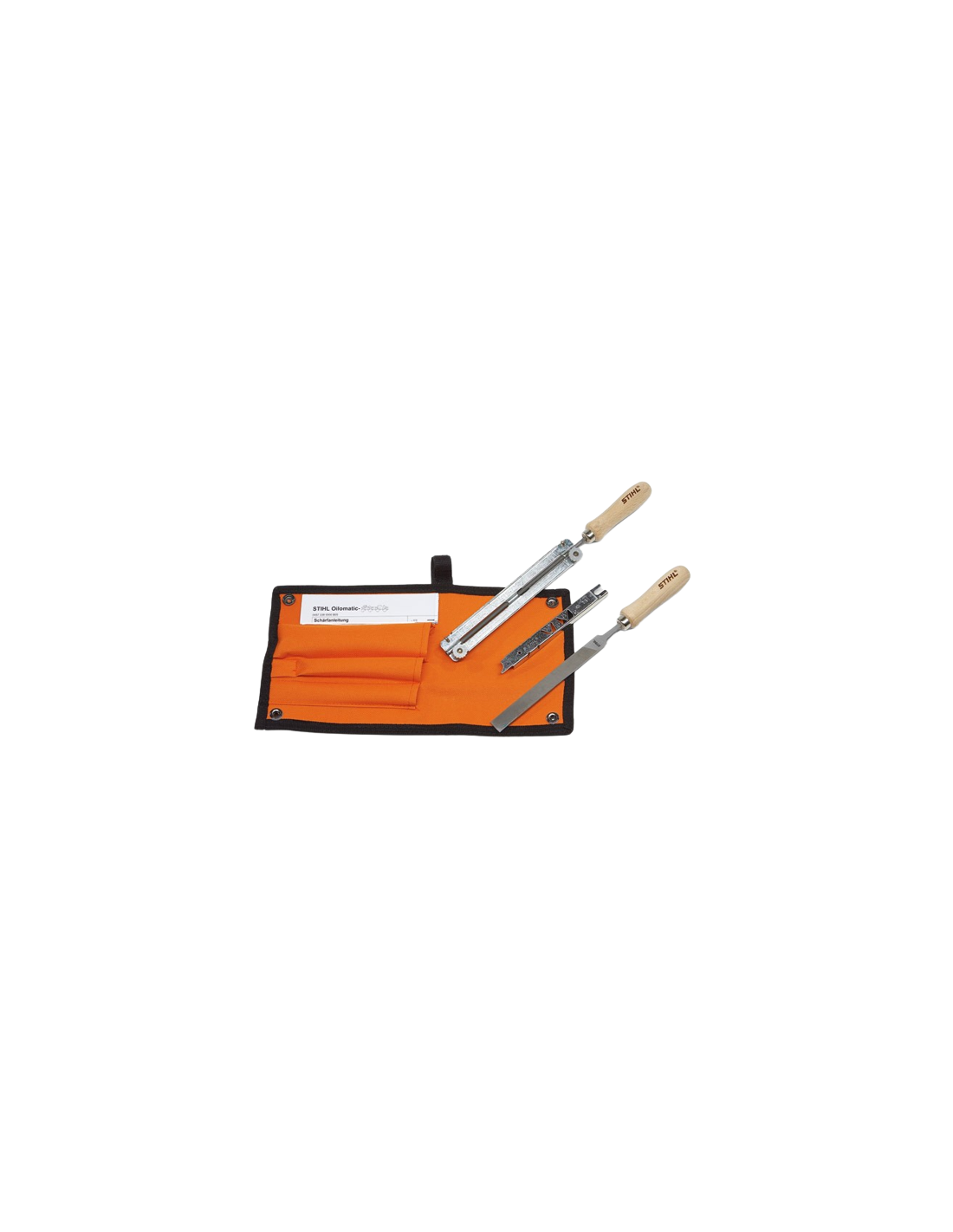 - Galandinimo rinkinys, kurį sudaro dildės laikiklis su apvalia dilde, plokščia dildė ir galandinimo šablonas ;