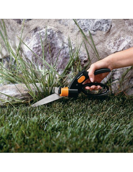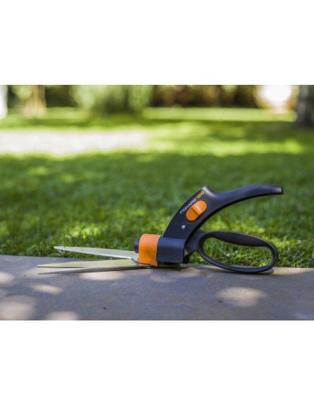 - Fiskars žolės žirklės ypač lengvos, jomis paprasta naudotis. Išradinga peilio pavara užtikrina ne tik patikimą pjūvį, bet ir saugo ašmenis nuo užsikimšimo žole. Ašmenų užraktas. Ergonomiškas dizainas. Ašmenys gali būti pasukami 360 kampu.